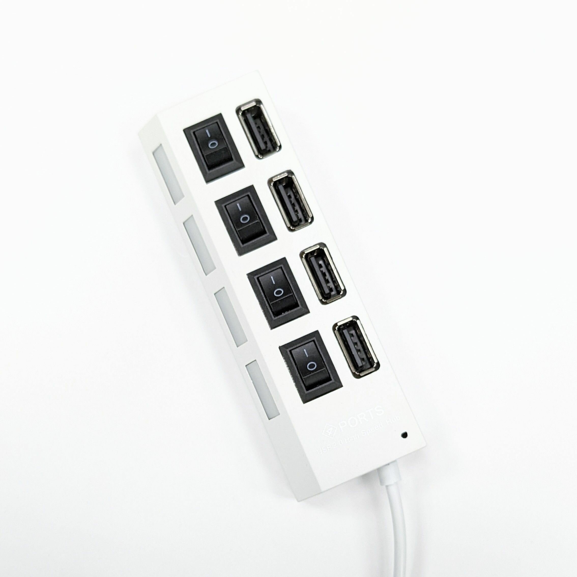 USB Hub разветвитель на 4 USB с выключателями (Белый)