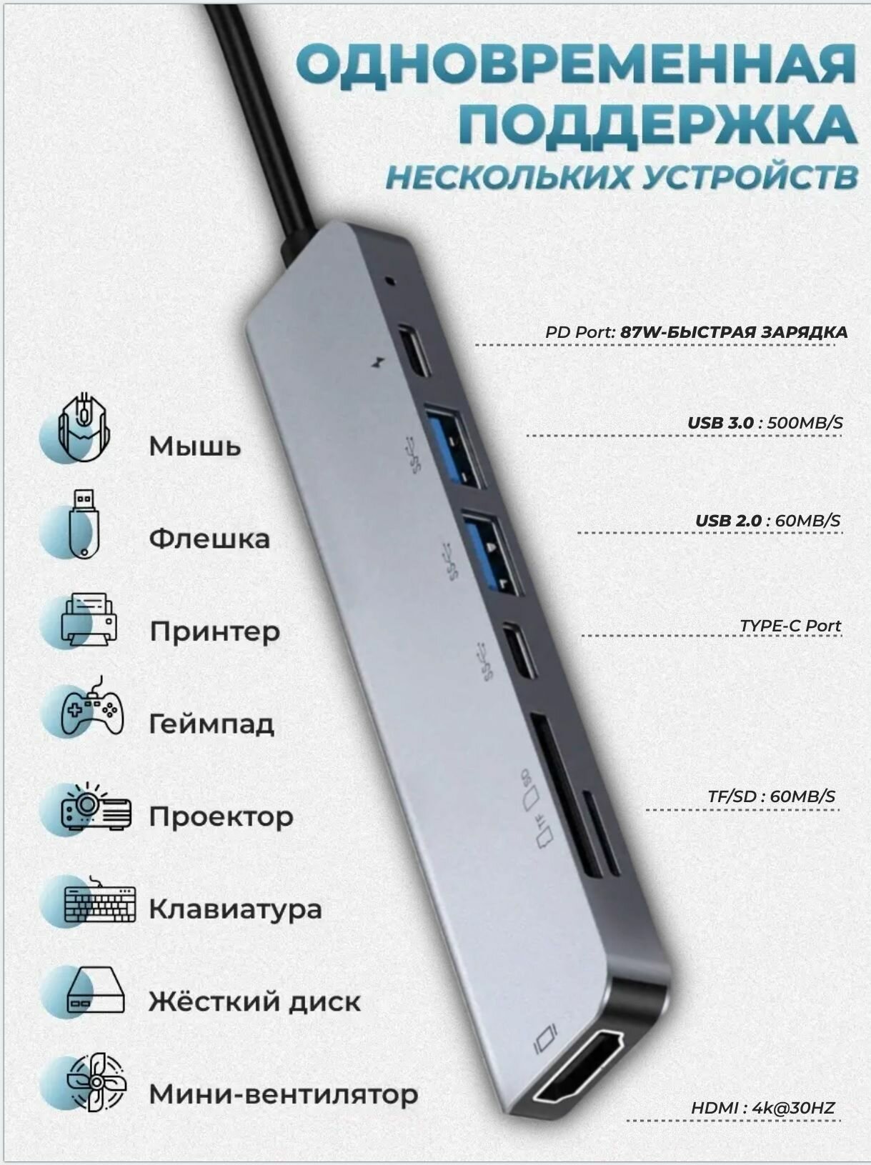 0 отзывов, средняя оценка 0. Чтобы купить «USB HUB разветвитель 7 в 1 Type C для MacBook / USB / HDMI адаптер 4k/ RJ-45 адаптер / USB HUB 3.0 / картридер для ноутбука» по лучшей цене мы сканируем авито, алиэкспресс, маркет, озон, савеловский, плеер, горбушку, беру, официальные сайты и находим минимальную. Администрация не несет ответсвенность актуальность цен на USB HUB разветвитель 7 в 1 Type C для MacBook / USB / HDMI адаптер 4k/ RJ-45 адаптер / USB HUB 3.0 / картридер для ноутбука, более подробно узнавайте на сайте магазина.