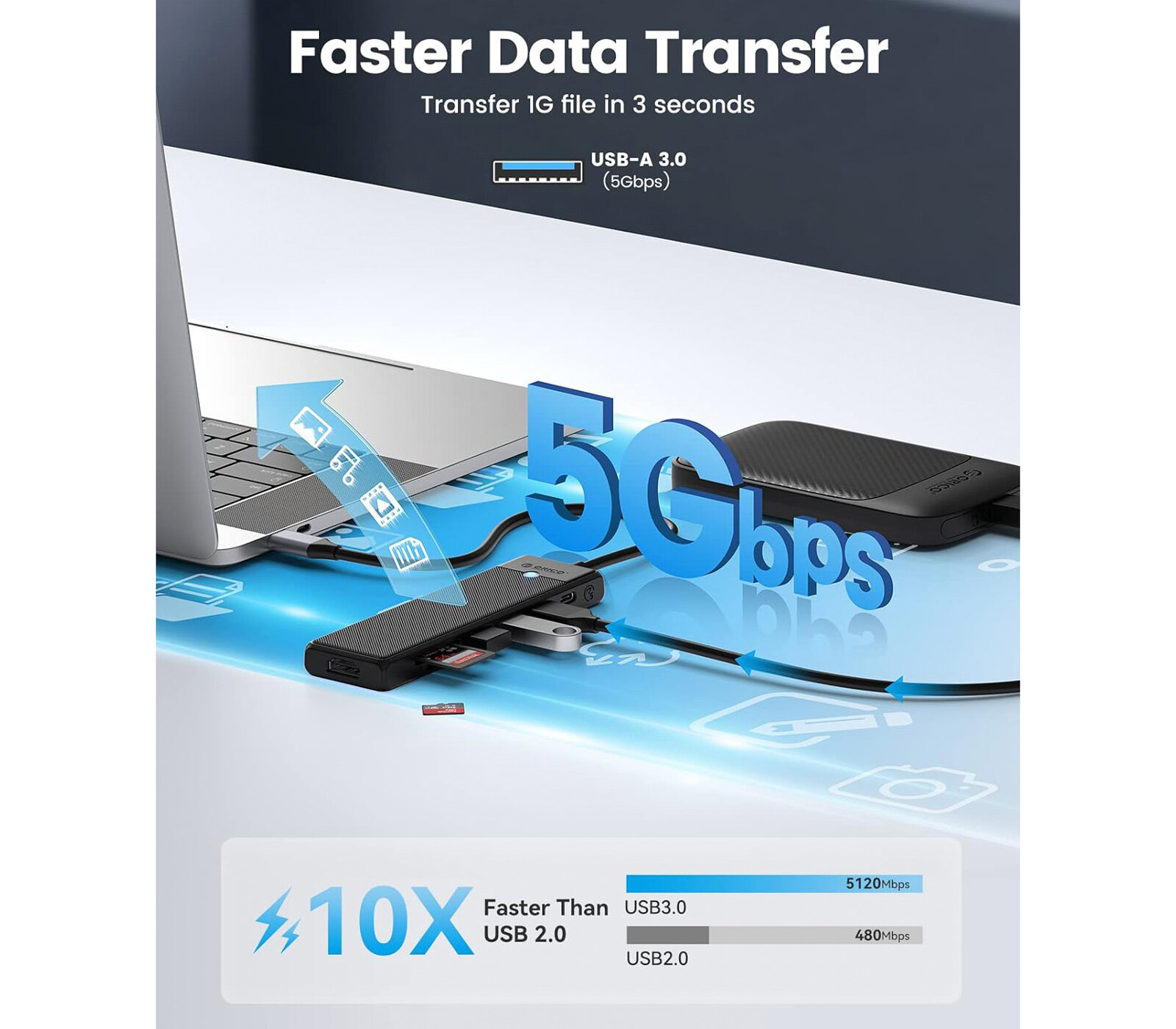 10 цен на Док-станция Orico PWD-7P 3х USB-A + HDMI + PD 100 Вт + SD / Micro SD, 5 Гбит/с