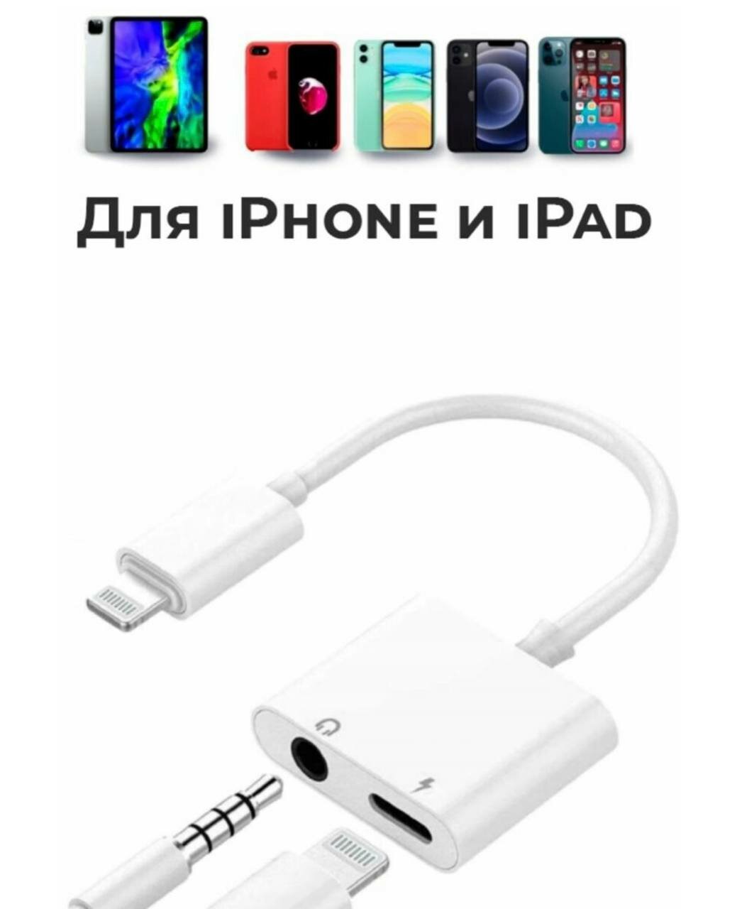 10 цен на Адаптер, переходник разветвитель Lightning - Lightning/3,5 мм, 10 см, белый