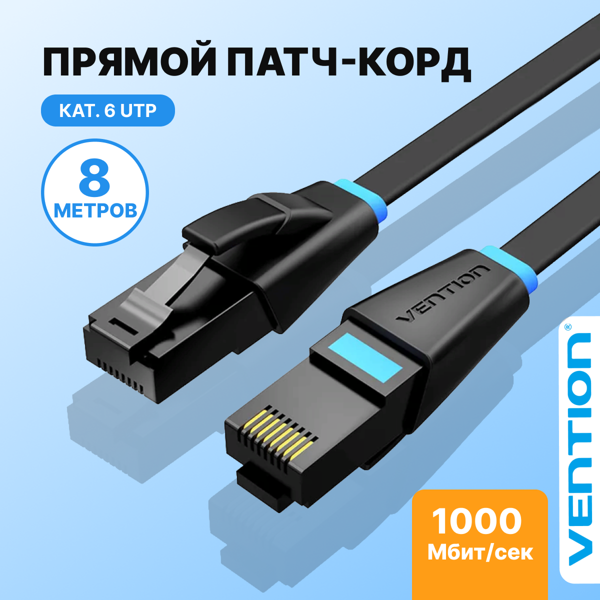 10 цен на Патч-корд UTP 8м Vention (IBJBK) категория 6 черный плоский