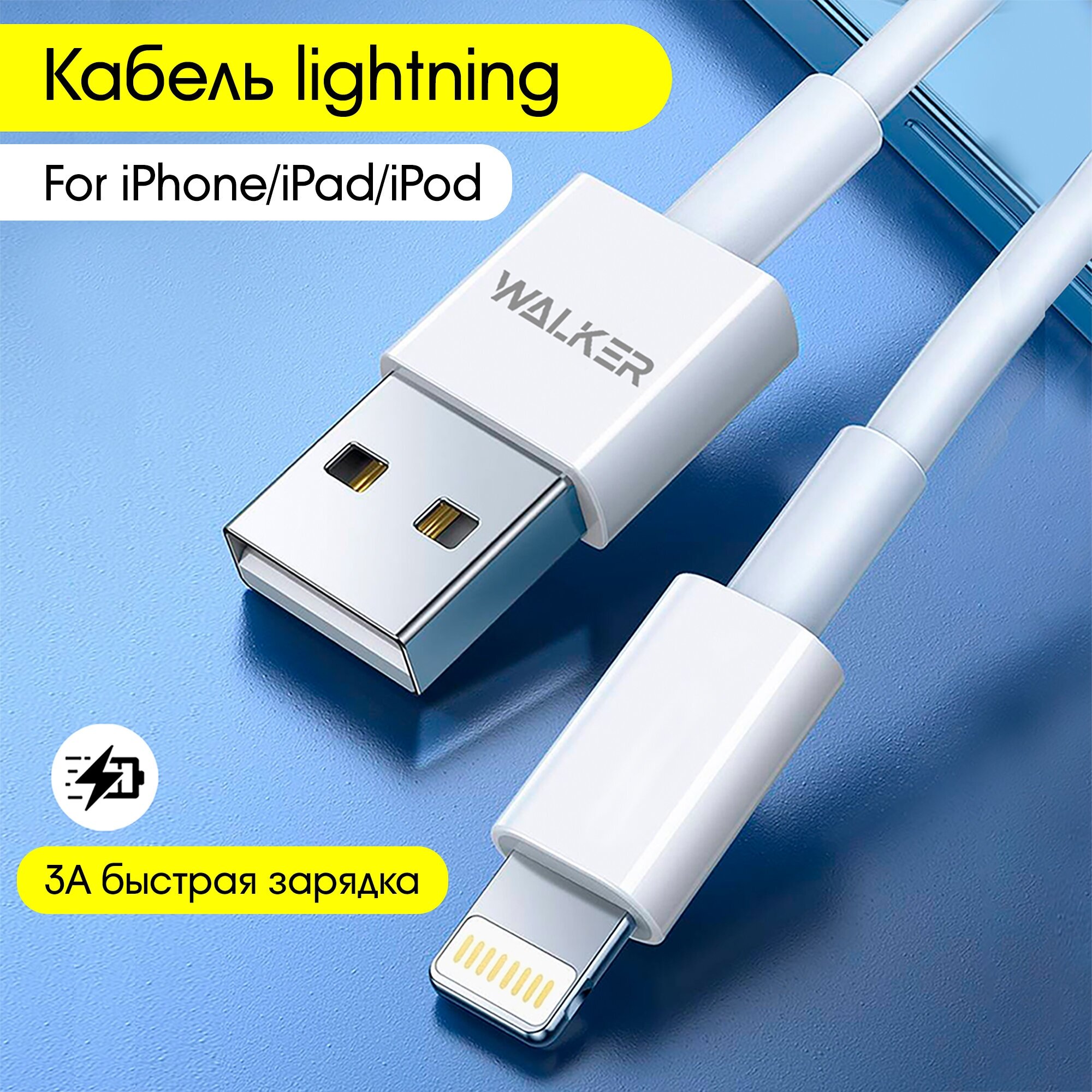Кабель для Apple, WALKER, C820, 3А, 15Вт, быстрый заряд, провод для айфон, шнур Lightning, зарядное устройство, аксессуар для смартфонов, белый информация: