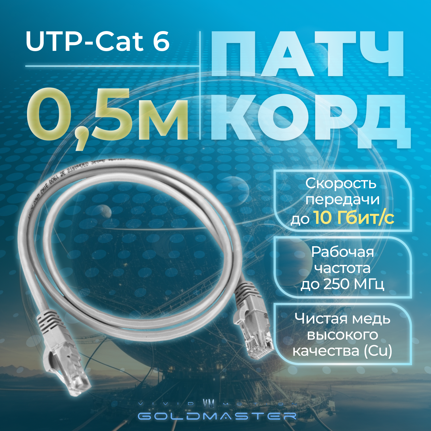 Патч-корд GoldMaster 0,5м, UTP cat6, медь, RJ45, Ethernet, LAN, серый, NA102-0,5m, контакты Blade позолота 03MU информация: