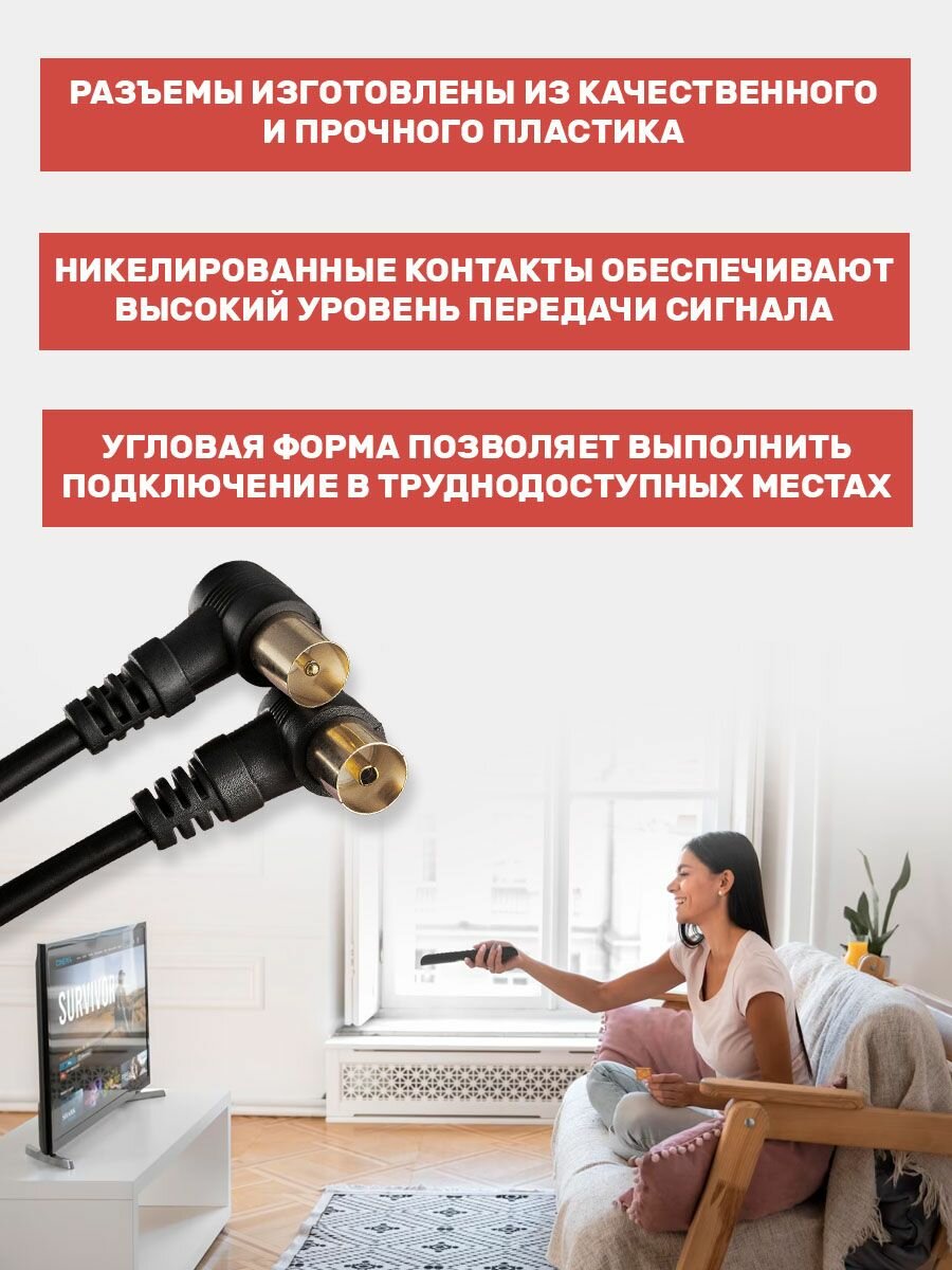 Отзывы на REXANT Шнур ТВ гнездо - ТВ штекер, угловой, длина 1,5 метра, черный 18-0012