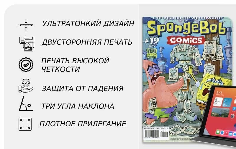 10 цен на Чехол на планшет Apple iPad Mini (2021г.) 6-го поколения 8,3" (Comics SpongeBob)