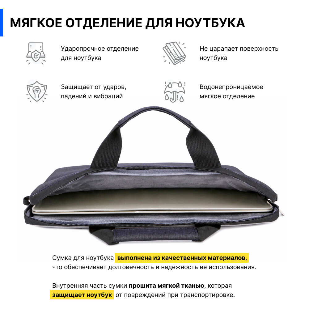 Отзывы на Сумка для ноутбука 15.6 - 16.1 дюймов MORUSSI и документов через плечо с ремнем, мужская и женская для Macbook Air и Pro черная