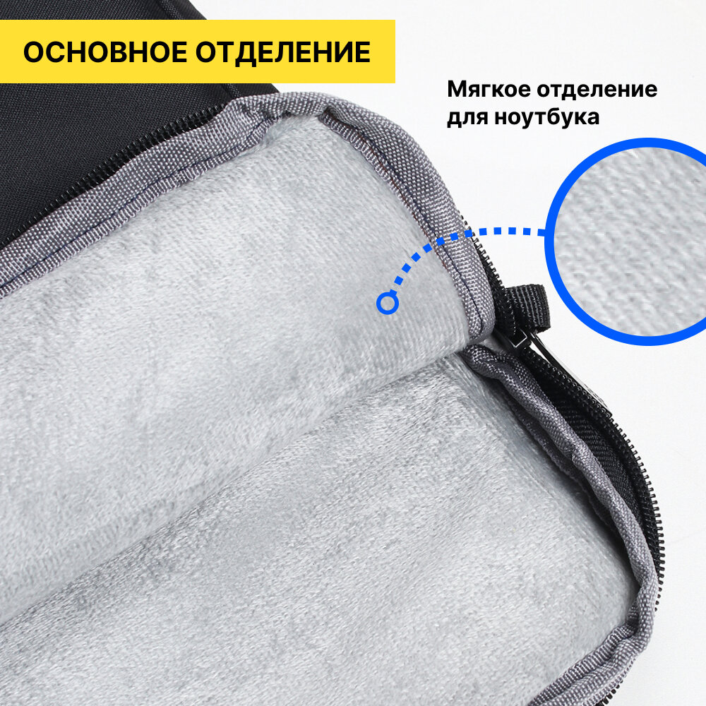 Сумка для ноутбука 15.6 - 16.1 дюймов MORUSSI и документов через плечо с ремнем, мужская и женская для Macbook Air и Pro черная информация: