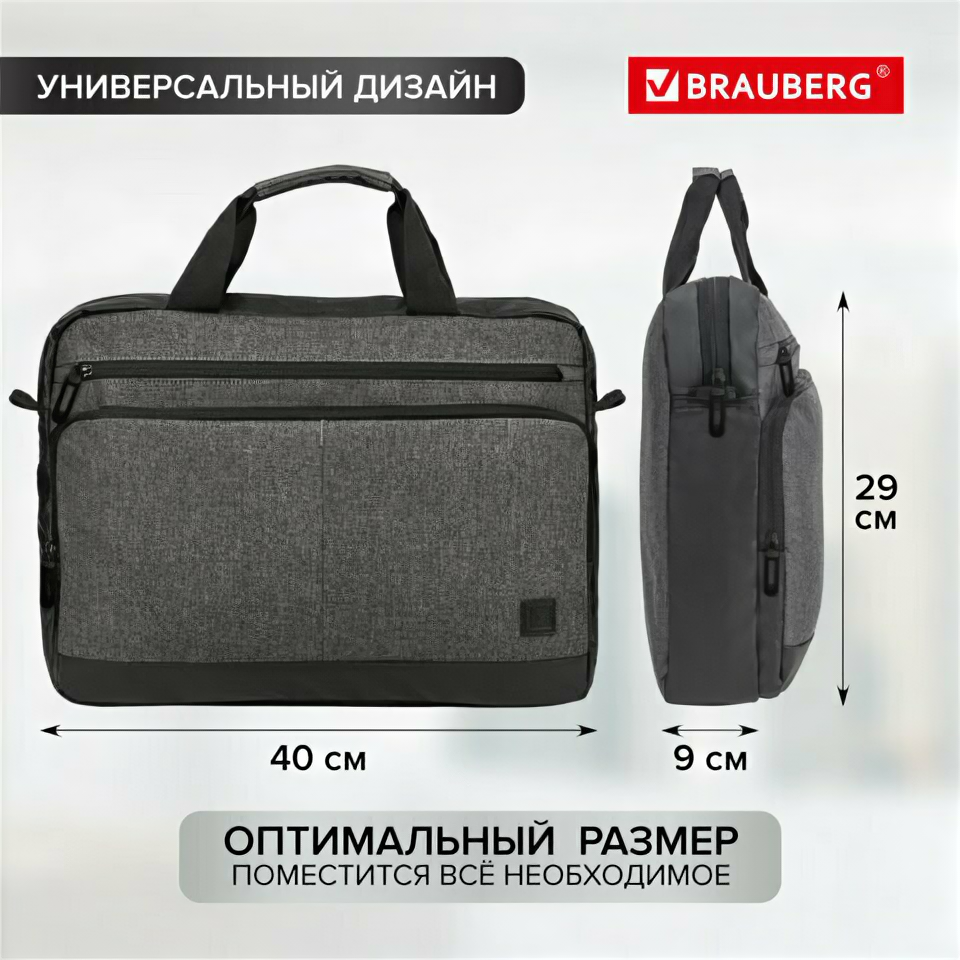 Сумка-портфель BRAUBERG "Forward" с отделением для ноутбука 15.6", темно-серая, 29х40х9 см, 270832 информация: