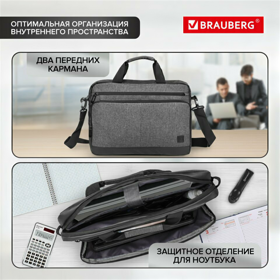 10 цен на Сумка-портфель BRAUBERG "Forward" с отделением для ноутбука 15.6", темно-серая, 29х40х9 см, 270832