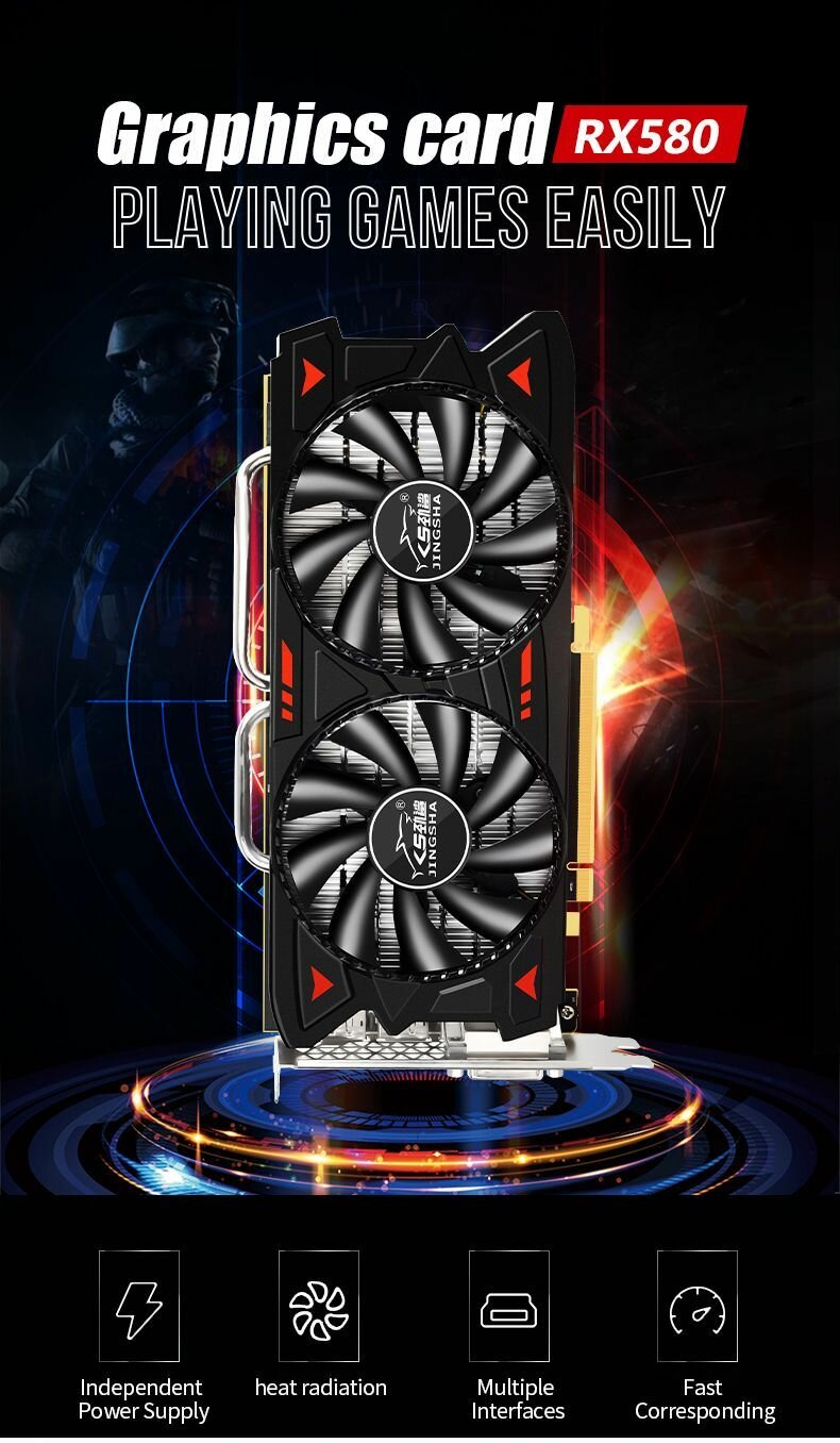 10 цен на Видеокарта JINGSHA AMD Radeon RX 580 8 ГБ, GDR5, 256 bit