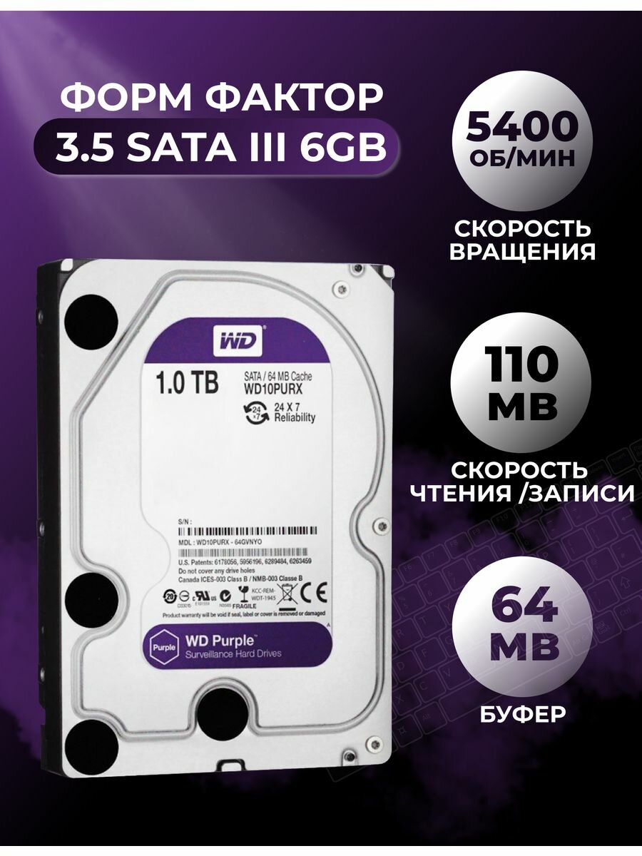 Жесткий Диск HDD Western Digital Purple 1TB 3,5 SATA III информация: