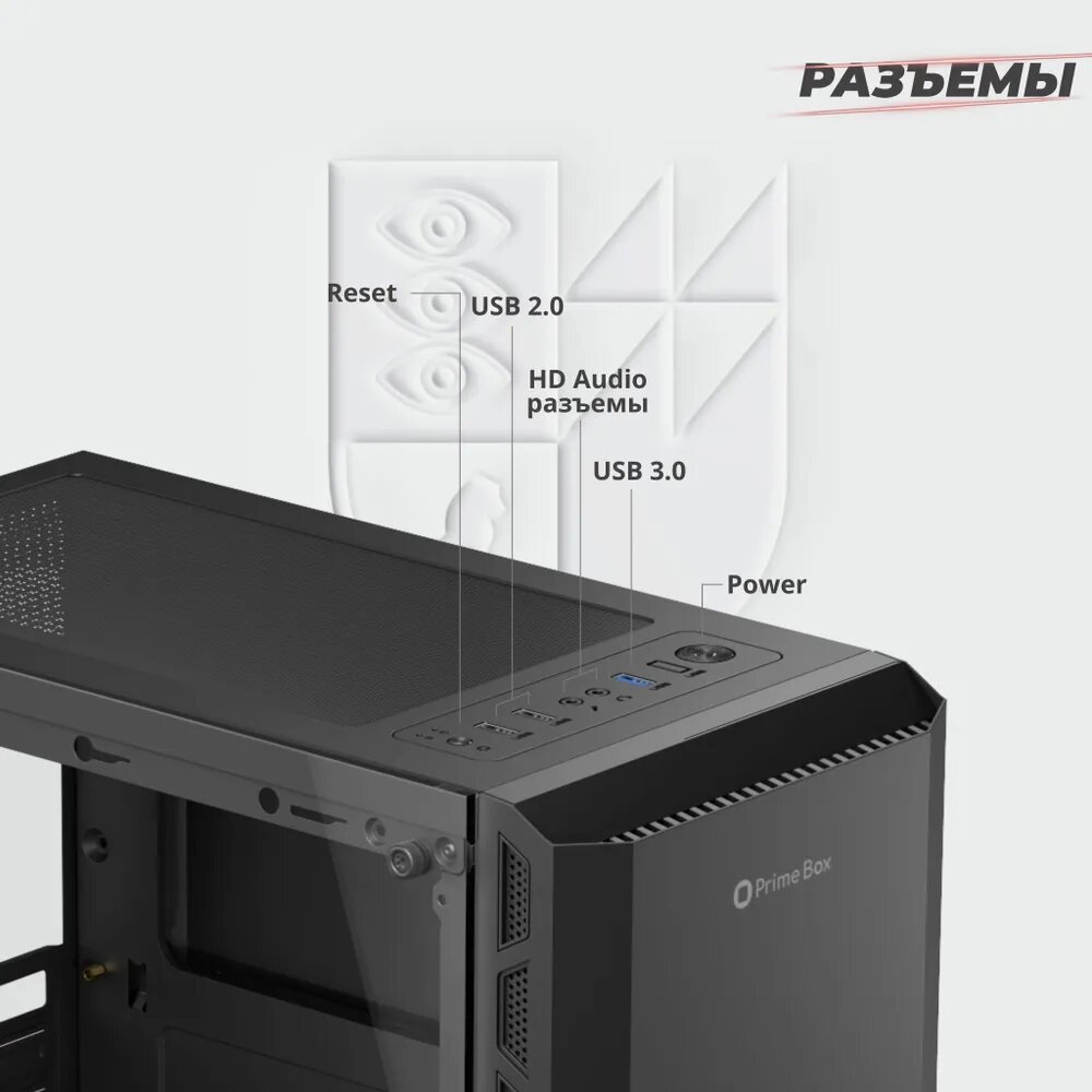10 цен на Корпус Prime Box PREDATOR V7 Black + закаленное стекло, ATX, Micro-ATX, Mini-ITX
