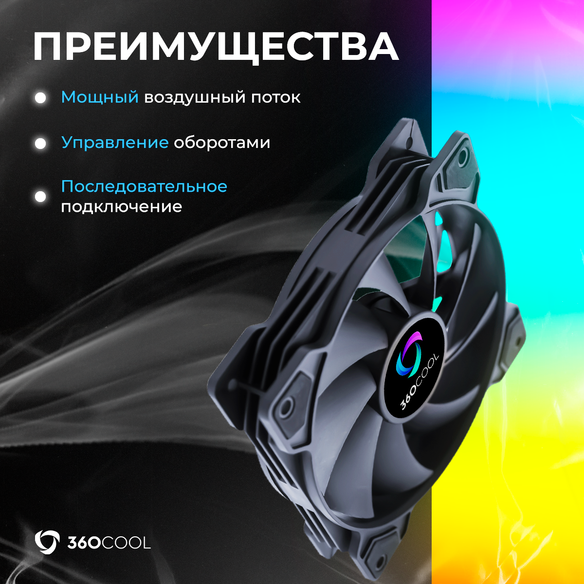 10 цен на Кулер (вентилятор) 360COOL для корпуса компьютера 120мм, подключение к ПК через 4-pin PWM, длина кабеля 50см, черный