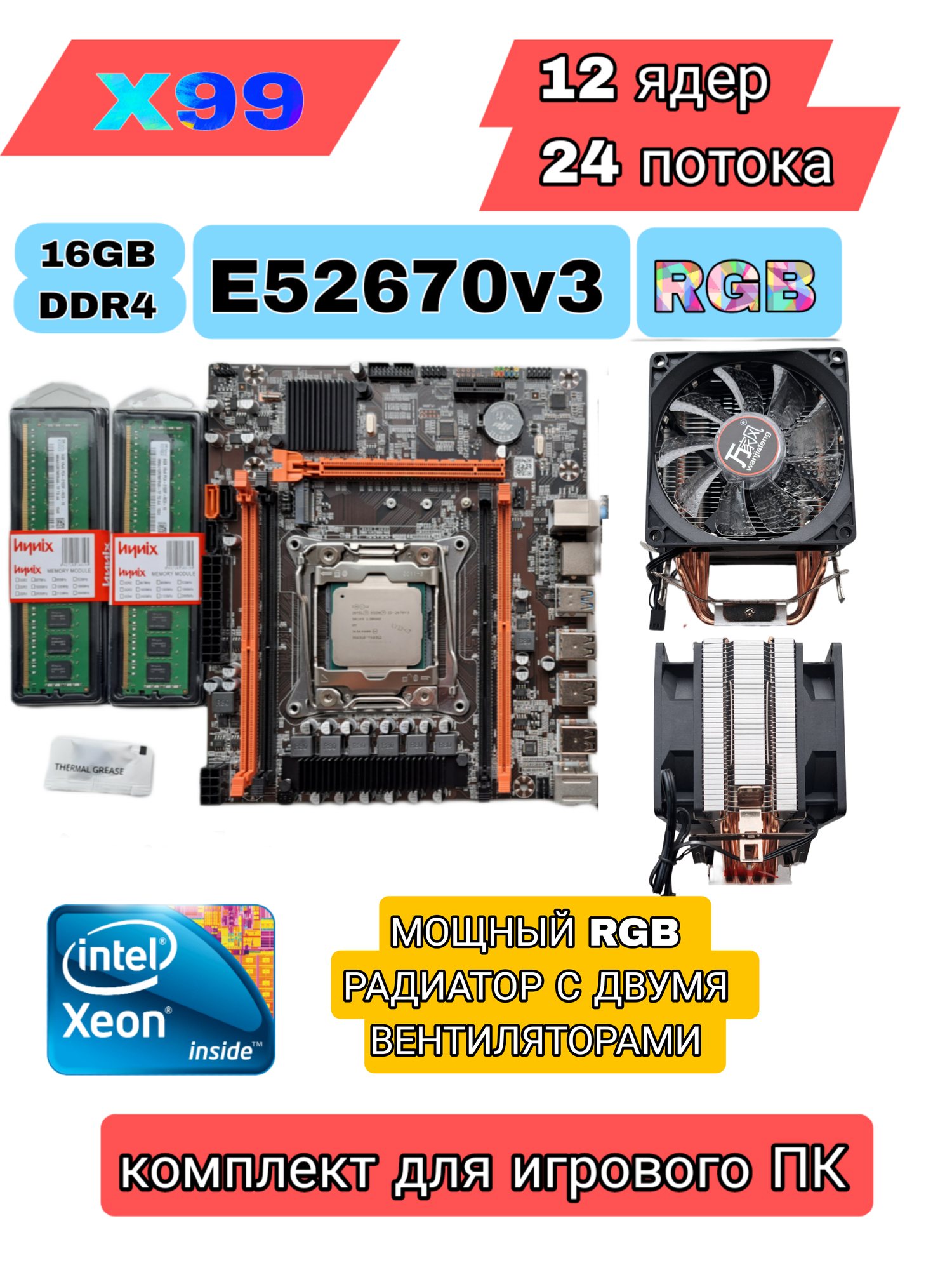 Отзывы на Материнская плата intel X99 комплект процессор e52670 v3 ОЗУ 16гб радиатор башня RGB