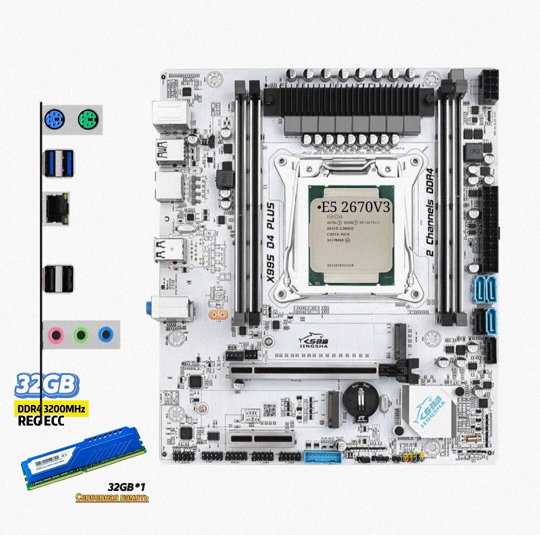 Комплект материнская плата Amentmen X99-B4 + Xeon 2690V3 + 32GB DDR4 ECC REG 2x16GB Blue