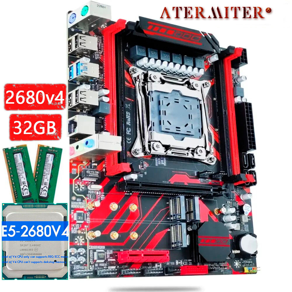 10 цен на Комплект материнская плата Atermiter X99 D4 + Xeon 2680V4 + 32GB DDR4 ECC REG