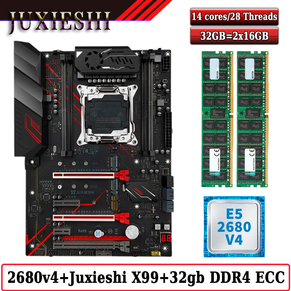 10 цен на Комплект материнская плата Juxieshi X99-MR9A PRO + Xeon 2680V4 + 32GB DDR4 ECC