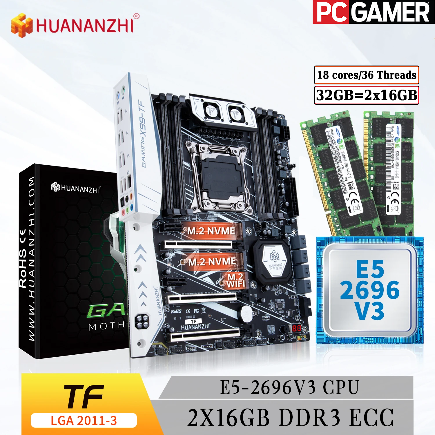10 цен на Комплект материнская плата Huananzhi X99-TF + Xeon 2696V3 + 32GB DDR3 ECC 2x16GB