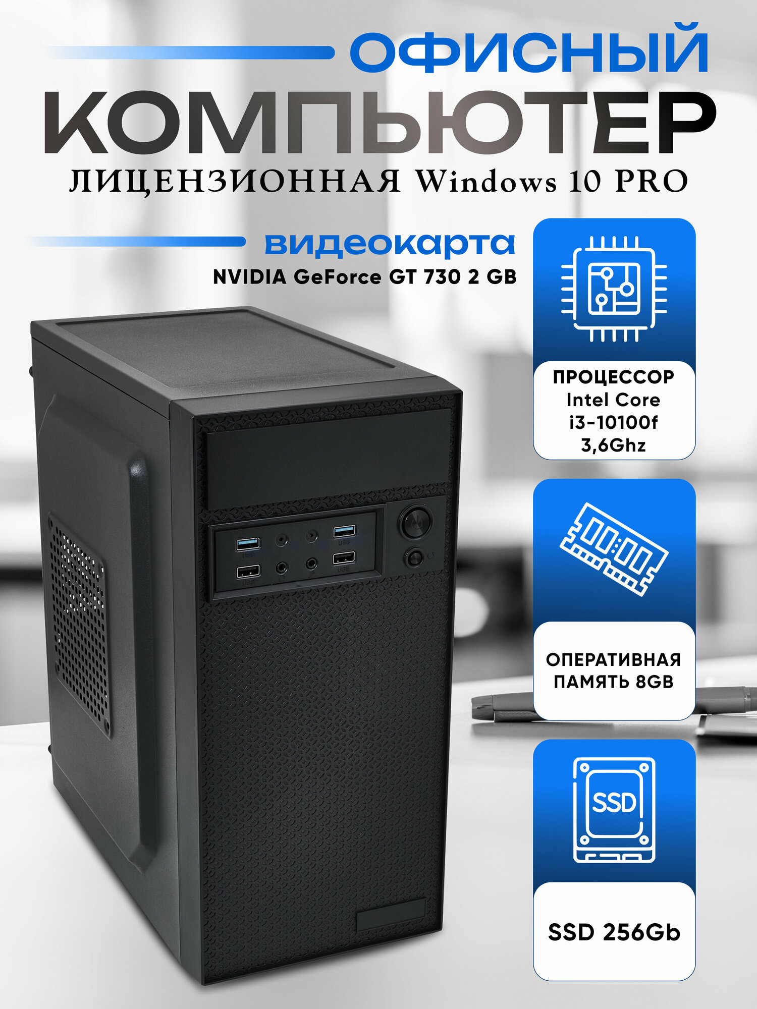 10 цен на Системный блок, офисный компьютер - Core i3-10100F, 8GB RAM, 256GB SSD m.2, nVidia GeForce GT 730 2GB