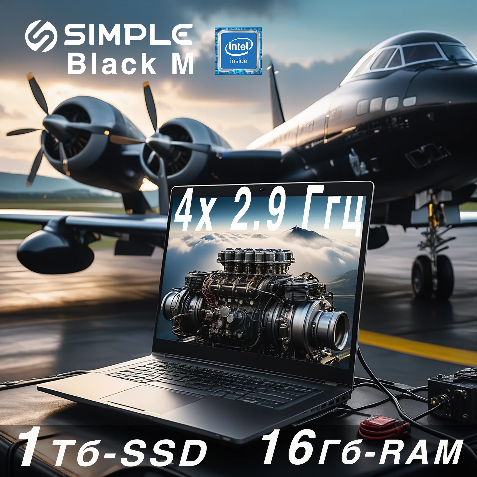 15.6" Ноутбук SIMPLE Black M 15.6, Ультрабук, Intel Celeron N5095A (2.9 ГГц), RAM 16 ГБ, SSD 1ТБ, Intel UHD Graphics 750 МГц, Windows 11, Российская клавиатура информация: