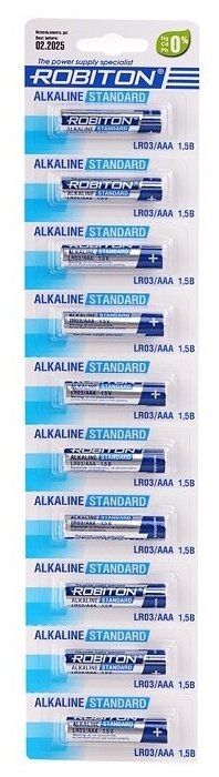Батарейки алкалиновые Robiton Standard LR03 BL10, 10 шт, блистер (LR03 BL10/14284)