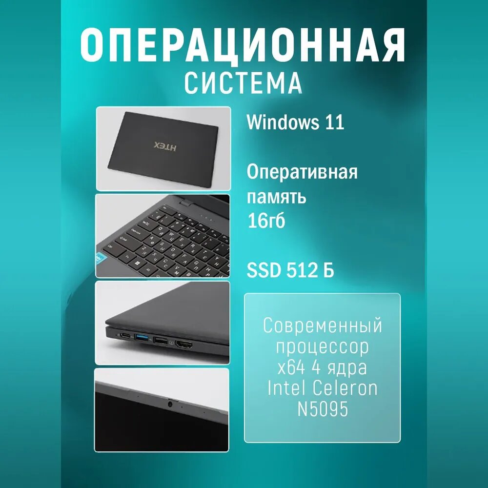HTEX H16Pro Ноутбук 15.6", Intel Celeron N5095, RAM 16 ГБ, SSD 512 ГБ, Intel HD Graphics, Windows Home информация: