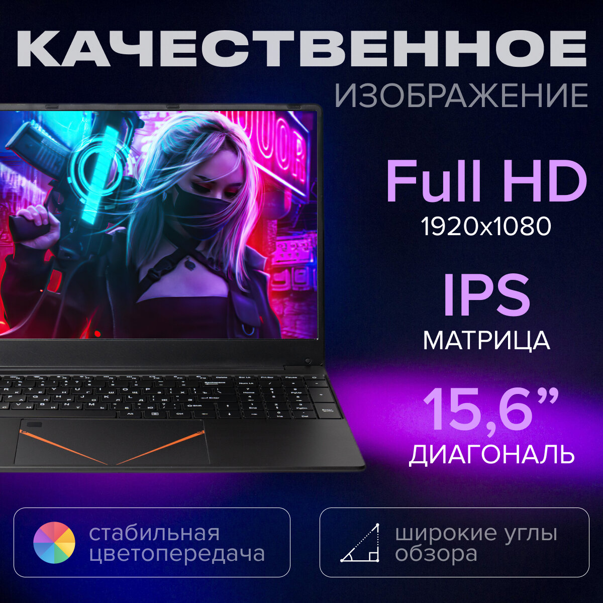 15,6 ноутбук RGB Intel N95 (до 3.4 GHz, 4 ядра), RAM 16 GB, SSD 128 GB, Intel UHD Graphics, RGB клавиатура, Windows 11 Pro 34 800 ₽