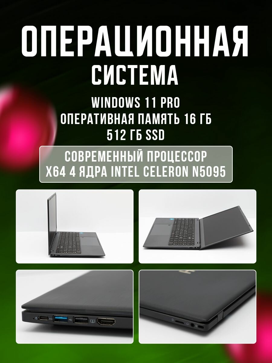 Cтильный ноутбук игровой процессор intel N5095 (2.60 GHz, 4 ядра) / RAM DDR4 16 GB/ NAND FLASH 256 GB/ 15.6 inch/ Widows 10 Pro