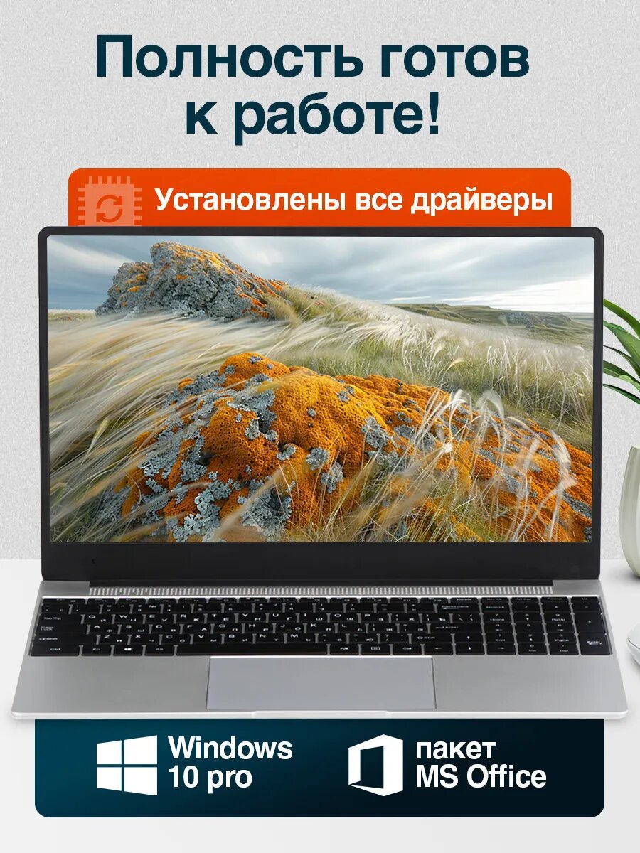 Ноутбук 15.6" игровой для работы и учебы DONZIO Intel Celeron N5095A, RAM 16 ГБ, SSD 512 ГБ, Intel UHD Graphics 600, Windows Pro, серебристый, Русская раскладка