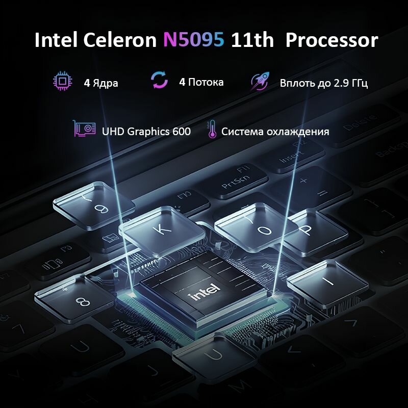 15,6 ноутбук Intel Celeron N5095 (до 2.9 GHz, 4 ядра), RAM 16 GB, SSD 512 GB, Intel UHD Graphics, Windows 10 Pro