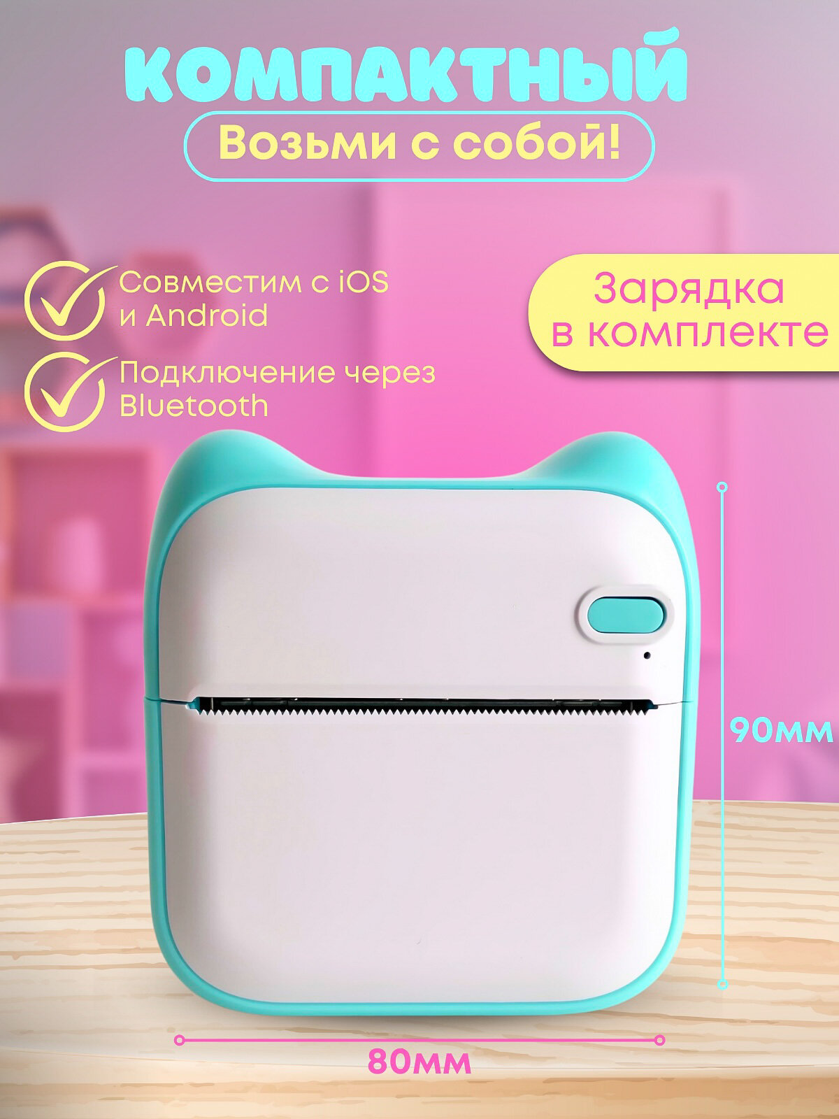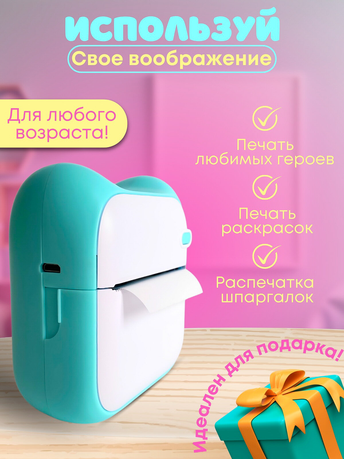 Портативный мини принтер детский для наклеек и стикеров термопринтер информация: