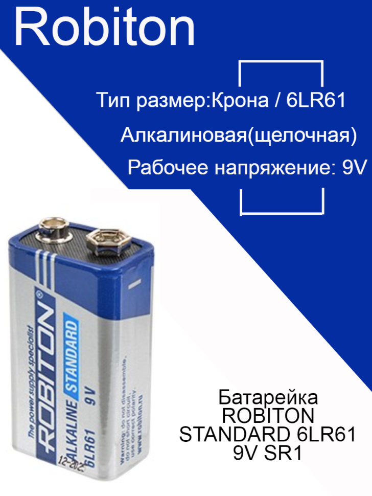 Батарейка ROBITON STANDARD 6LR61 9V SR1 информация: