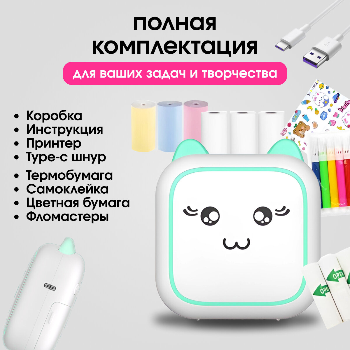 Мини принтер детский портативный, карманный принтер для печати наклеек информация: