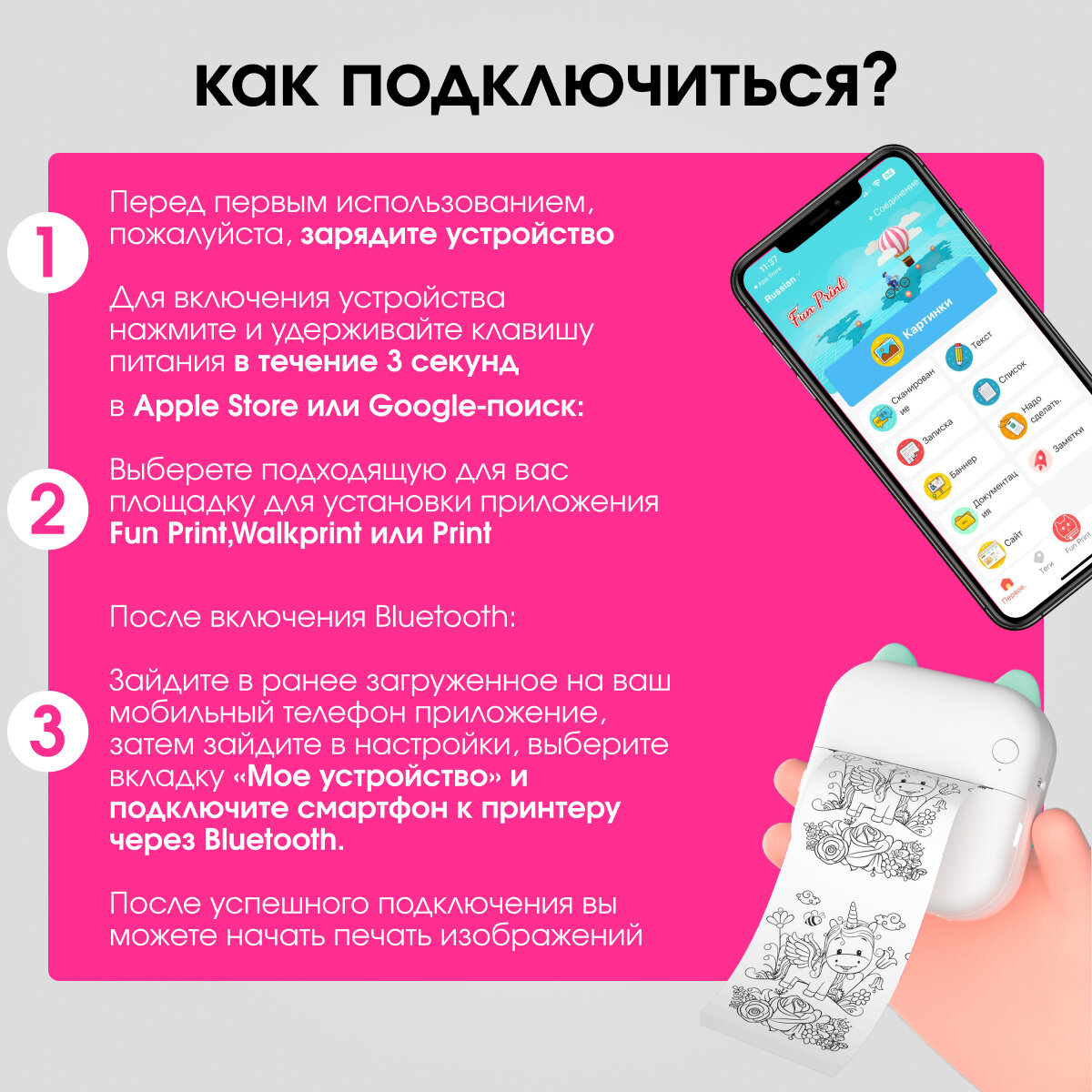 Отзывы на Мини принтер детский портативный, карманный принтер для печати наклеек