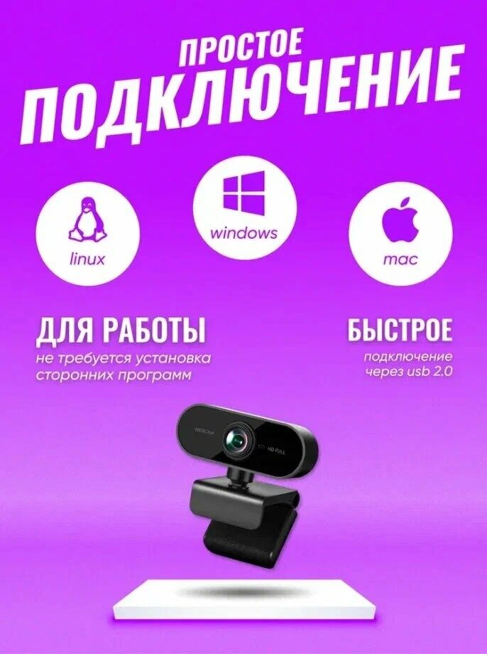 Веб-камера Full HD с микрофоном для ноутбука и ПК информация:
