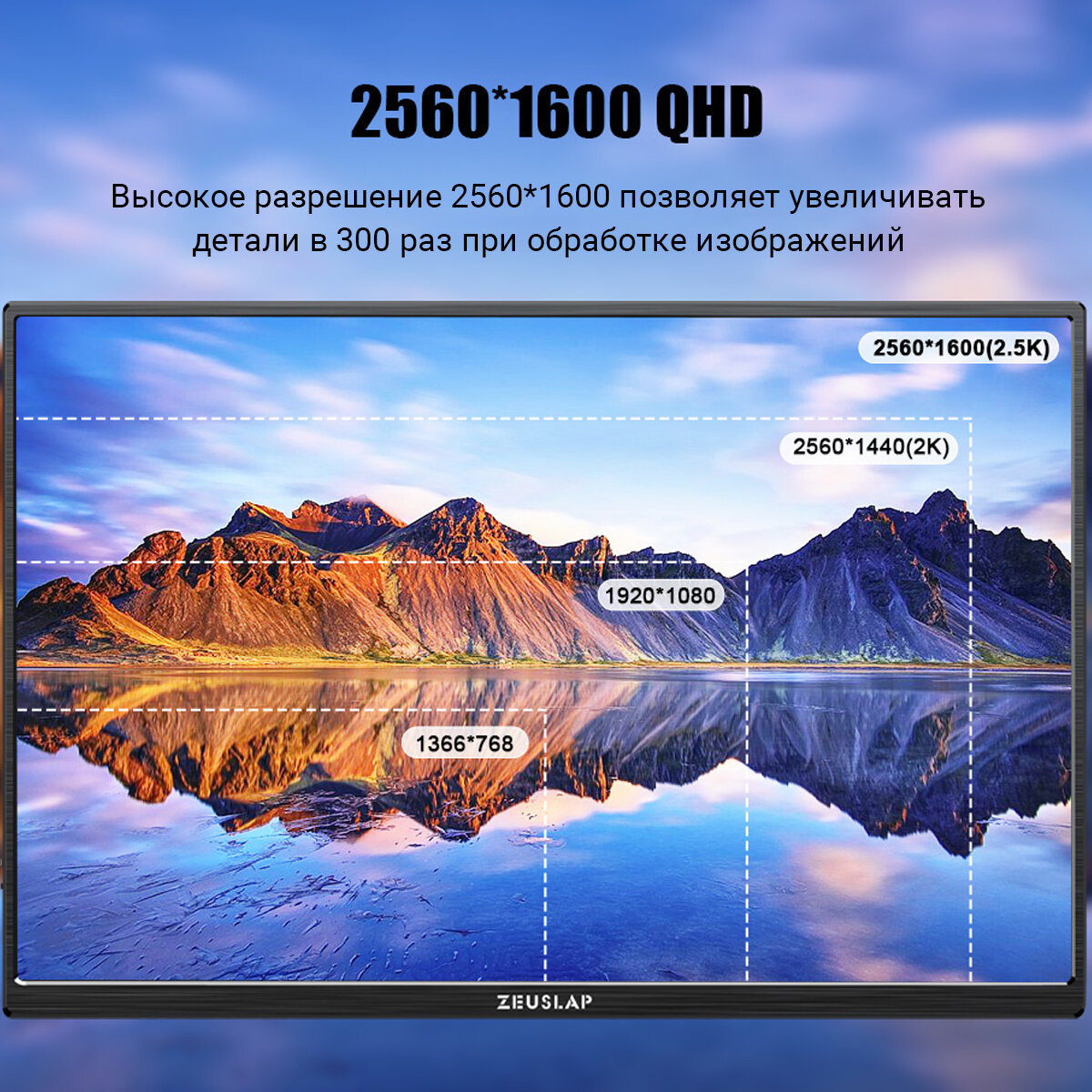 10 цен на 16" Портативный монитор ZEUSLAP P25K 2.5K 2560*1600, черный