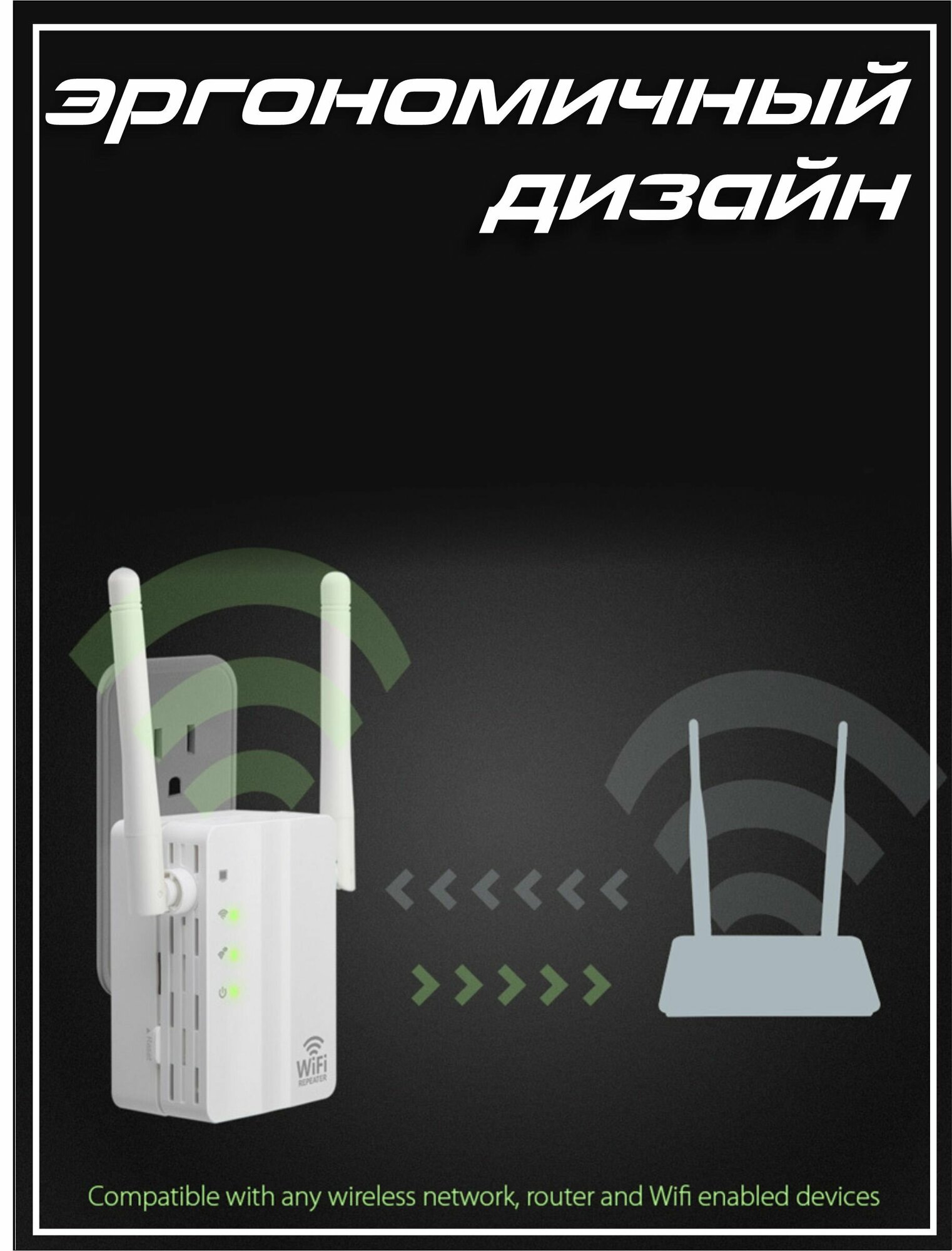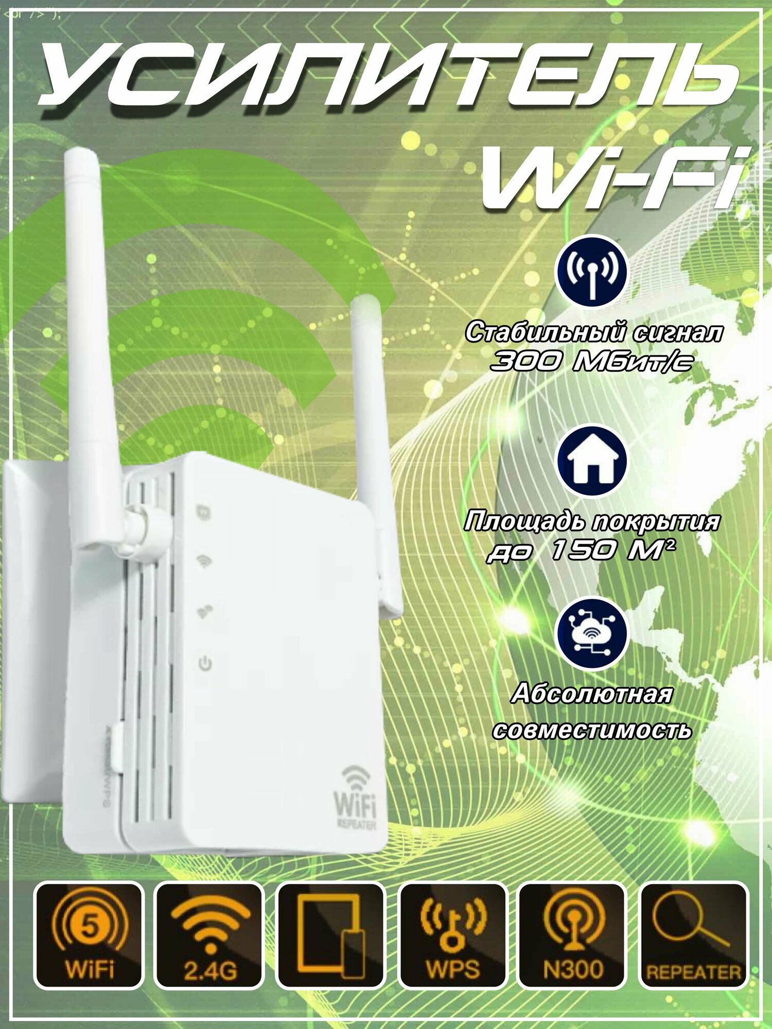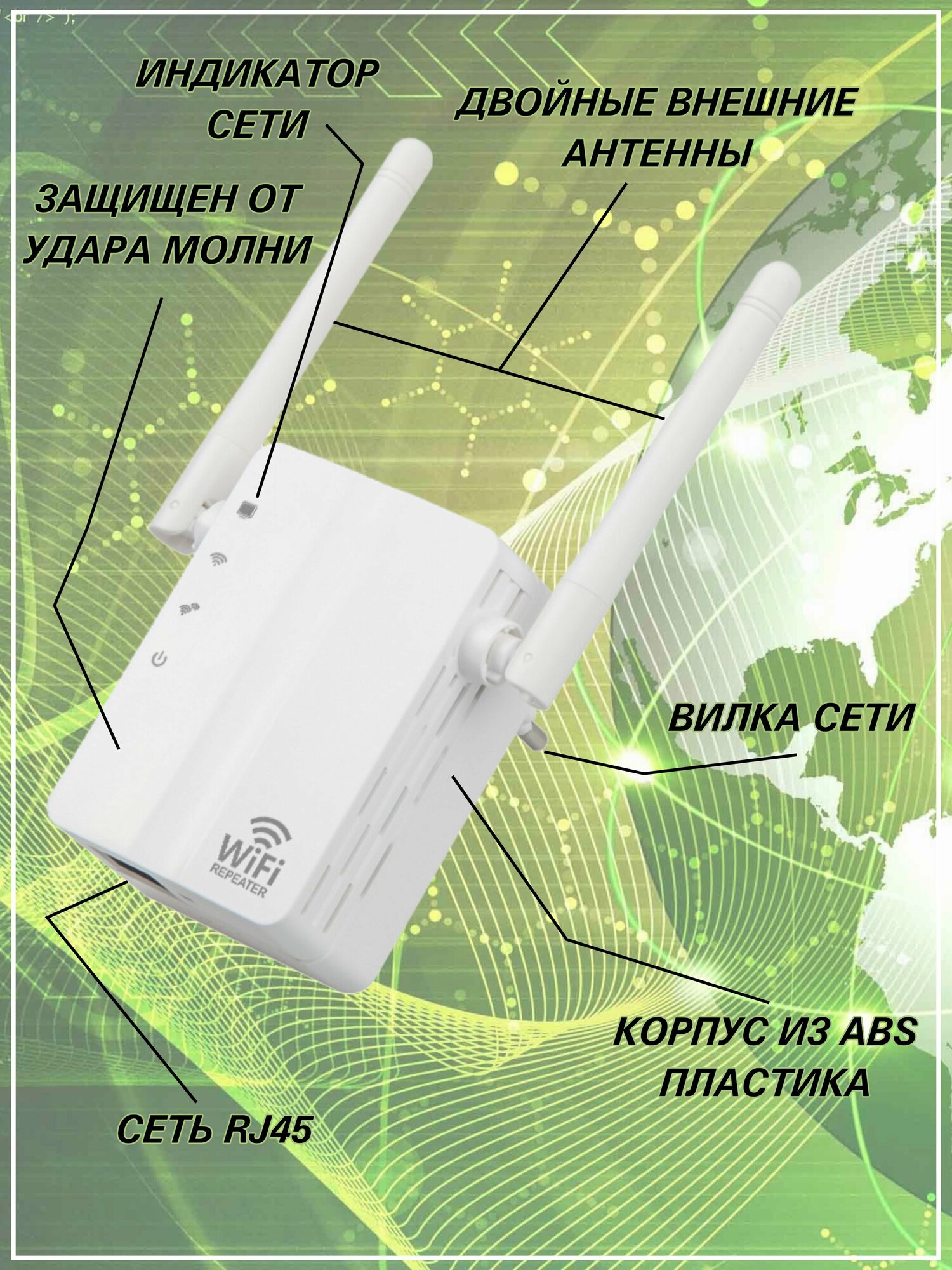Wi-Fi усилитель беспроводного интернет сигнала до 300м с индикацией белый Wi-Fi repeater, репитер, ретранслятор до 300 Мбит/сек, евровилка
