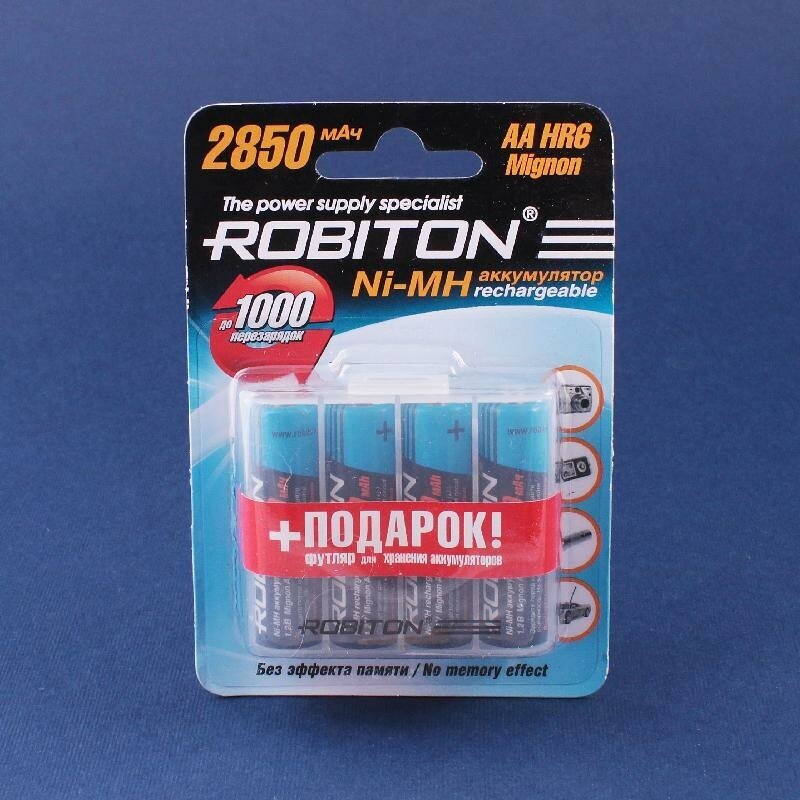10 цен на Аккумулятор Robiton LR6 AA 2850 mAh (уп 4 шт) + футляр
