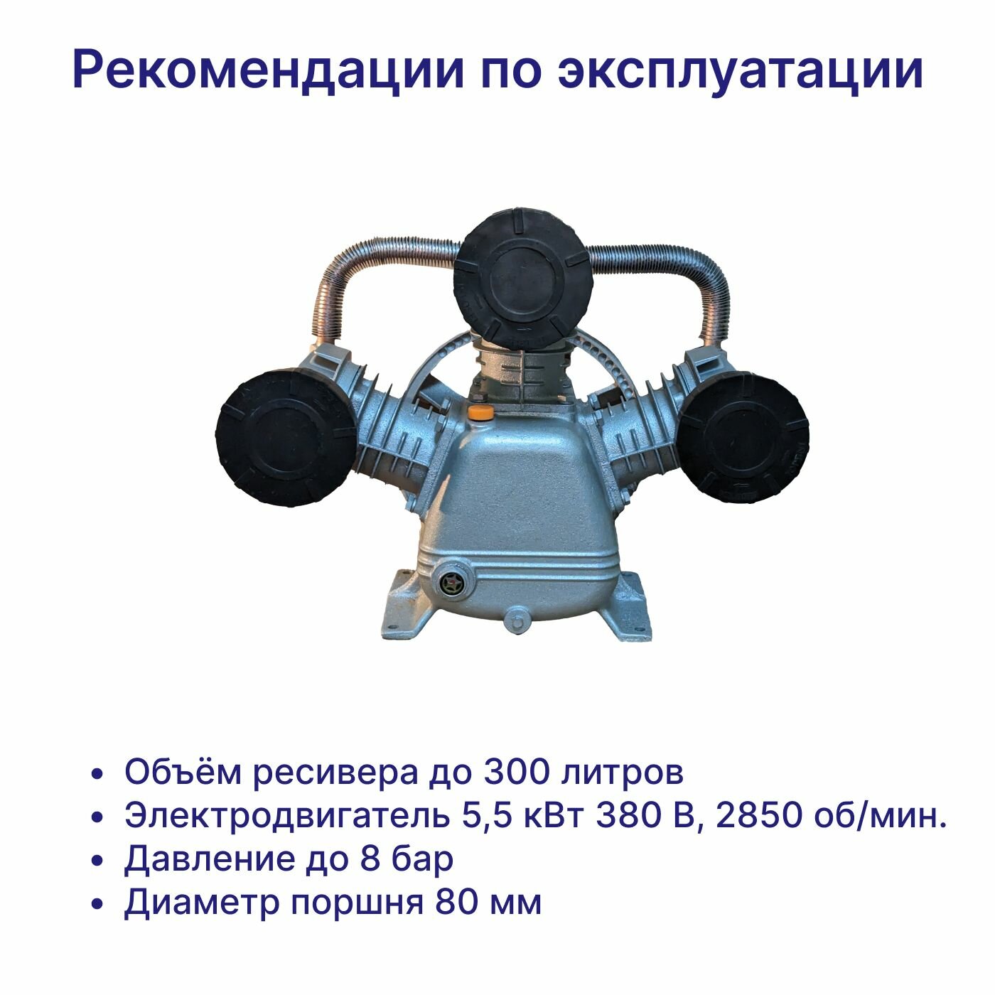 Головка компрессорная (поршневой блок) KRW-5,5 (5.5 кВт, 8 атм, 1050 л/мин, чугун, 3 фильтра) информация: