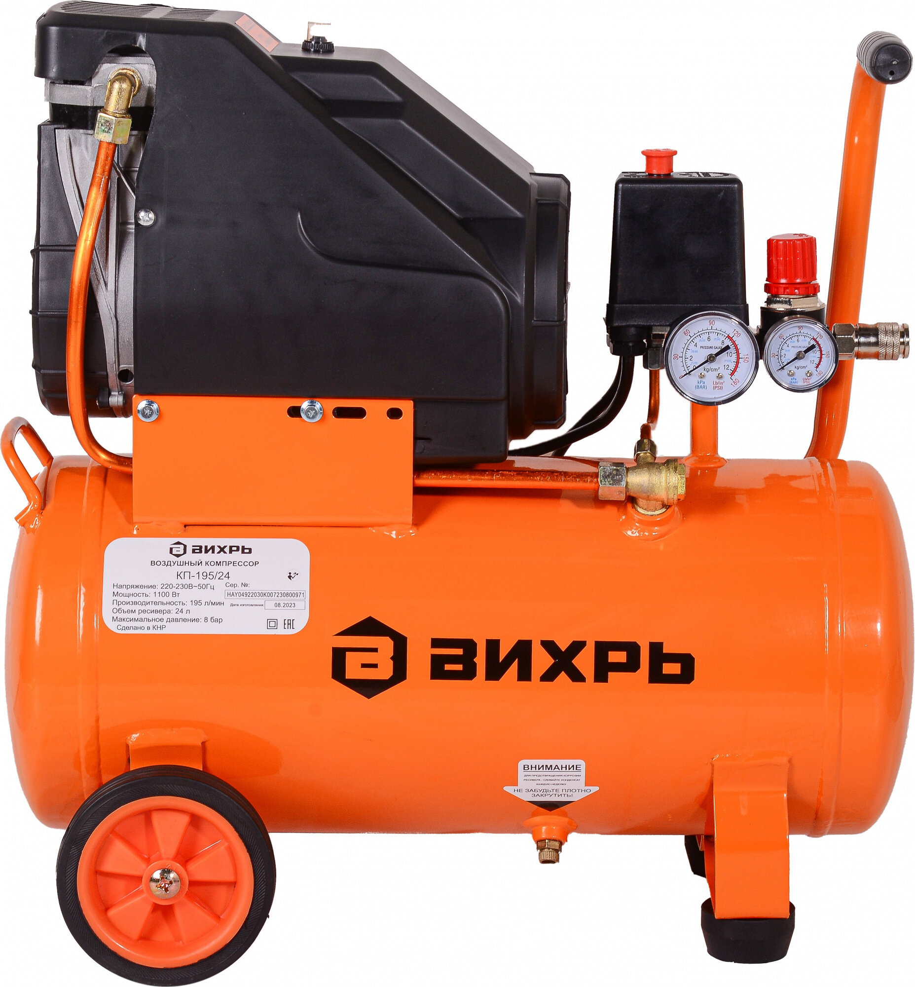 Компрессор винтовой Вихрь КП-195/24 безмасляный 195л/мин 24л 1100Вт оранжевый/черный информация:
