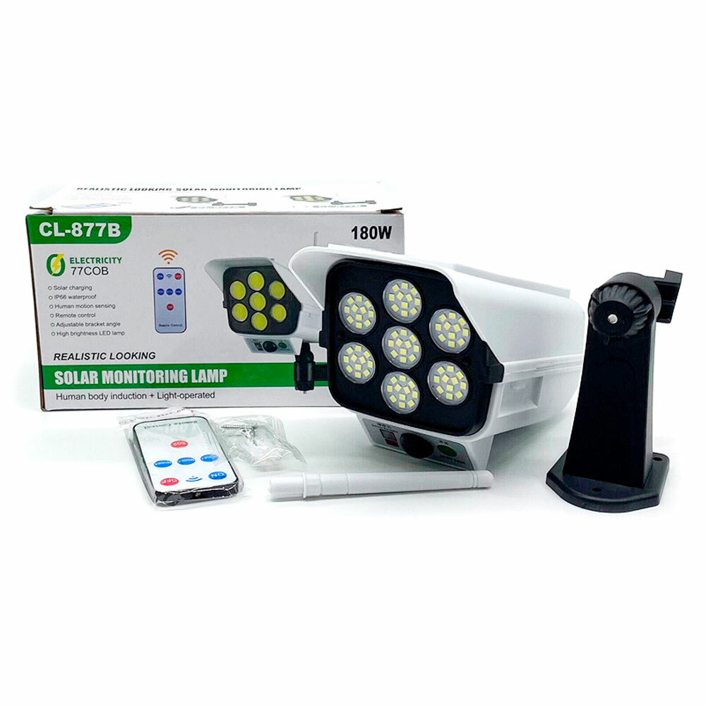 Муляж уличной видеокамеры YG-1575 с прожектором, датчиком движения, солнечной панелью, мигающим led огнем информация: