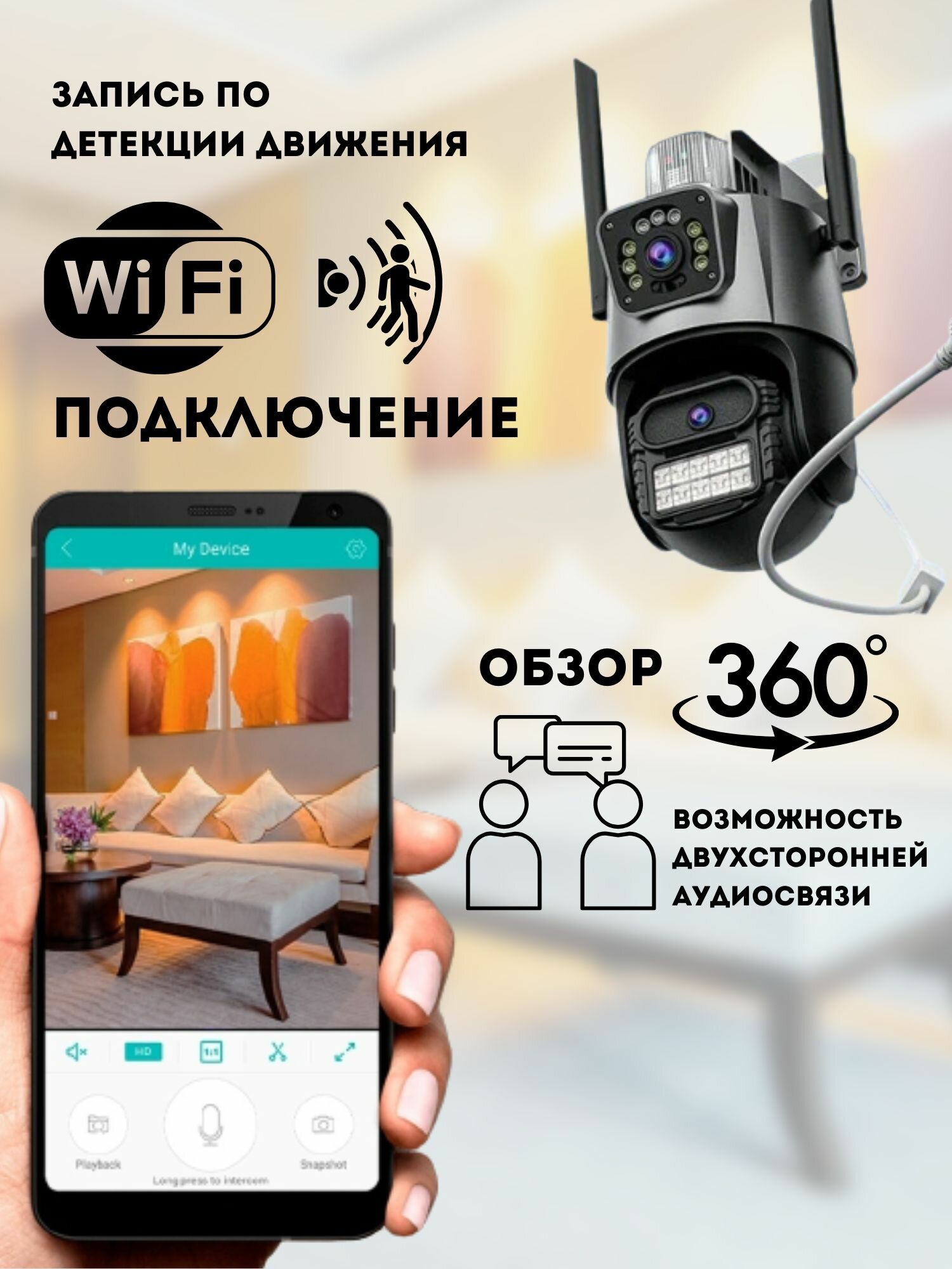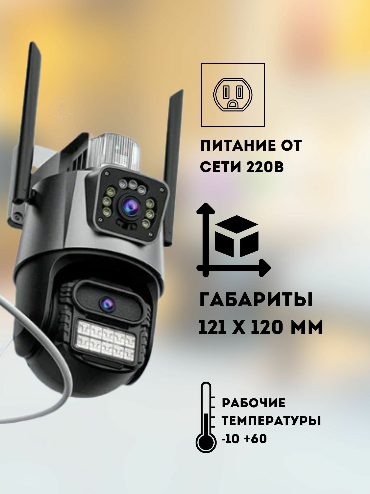 Уличная камера видеонаблюдения с двумя объективами 2 камеры с мигалкой и сиреной Wi-Fi PTZ 4K 8MP информация: