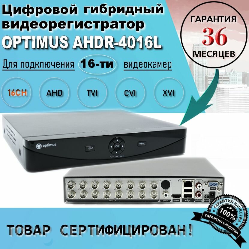 Гибридный видеорегистратор Optimus AHDR-4016L информация: