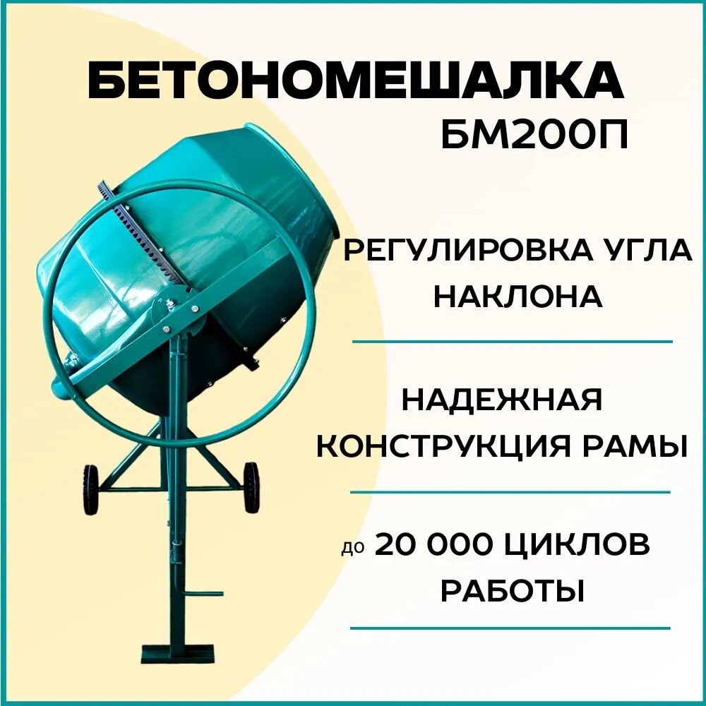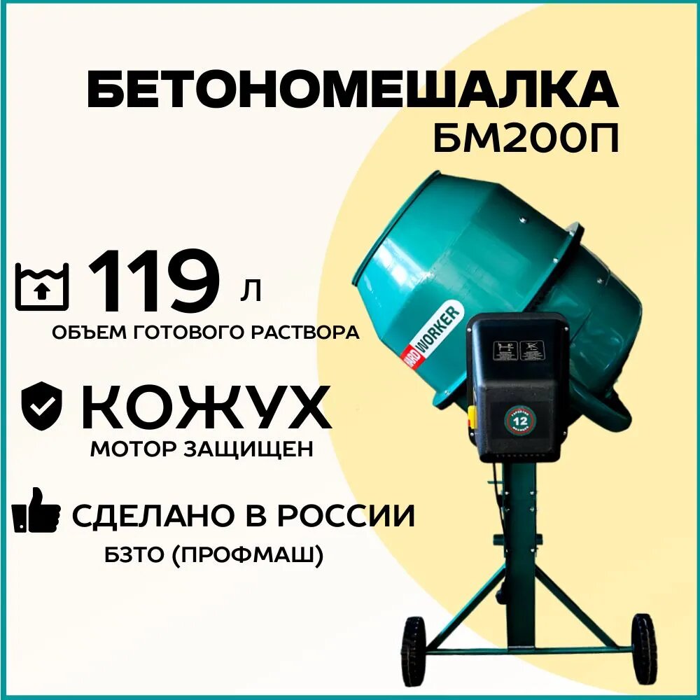 Отзывы на Бетономешалка строительная HARD WORKER БМ200П полиамидный венец, объем 175 литров, мощность 1000 Вт, бетоносмеситель электрический