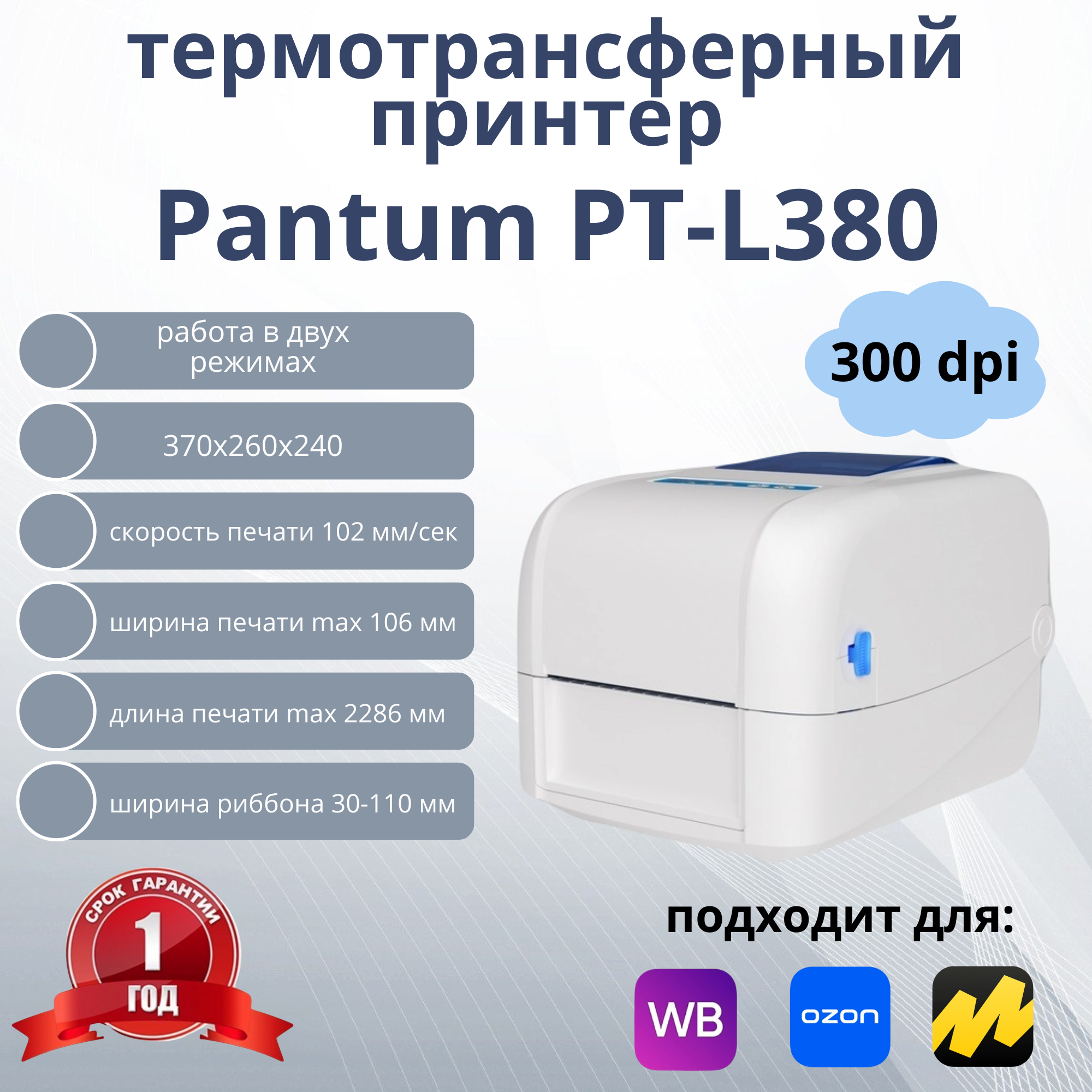 Термотрансферный принтер для этикеток/наклеек Pantum PT-L380 информация: