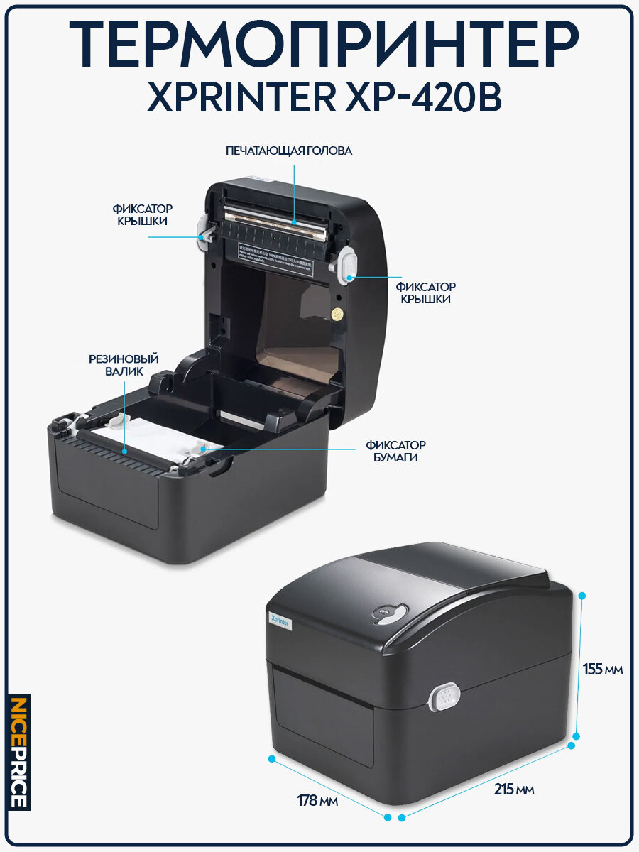 Мы выбрали 10 лучших цен на Принтер этикеток Xprinter XP-420B черный USB + Bluetooth. Перед тем как купить Принтер этикеток Xprinter XP-420B черный USB + Bluetooth посмотрите найденные предложения из Яндекс Маркета и других сайтов на основе XML фидов.