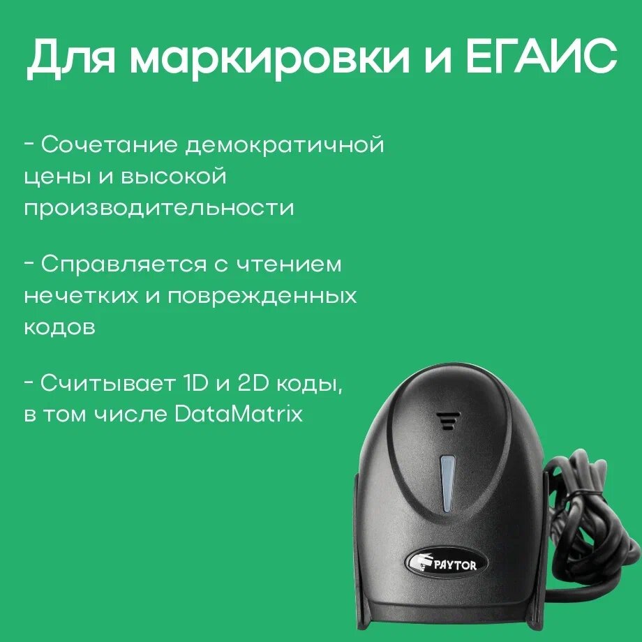 Сканер штрих-кода PayTor DS-1008, USB / DataMatrix / ЕГАИС