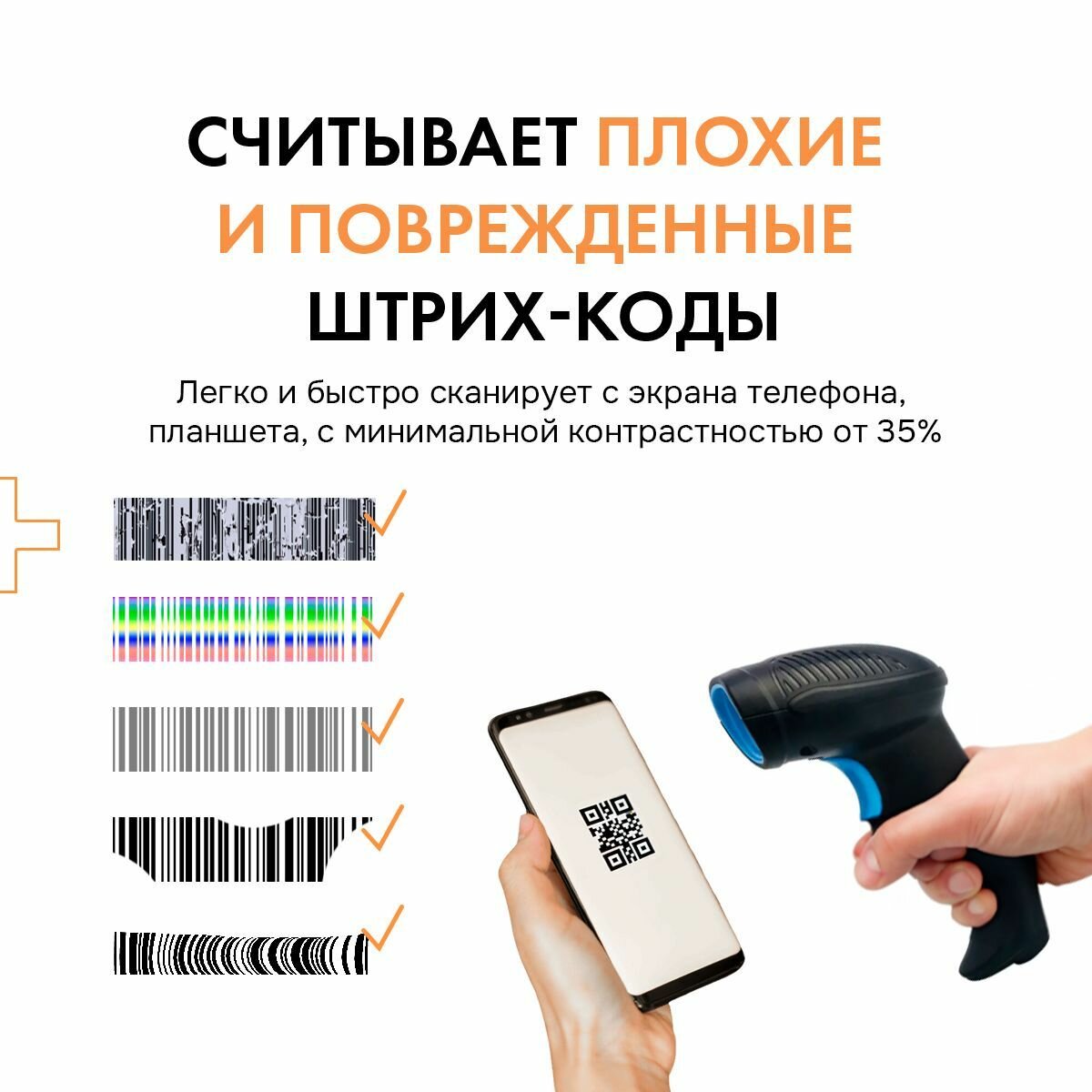 | Минимальная контрастность штрих-кода | 35 % |