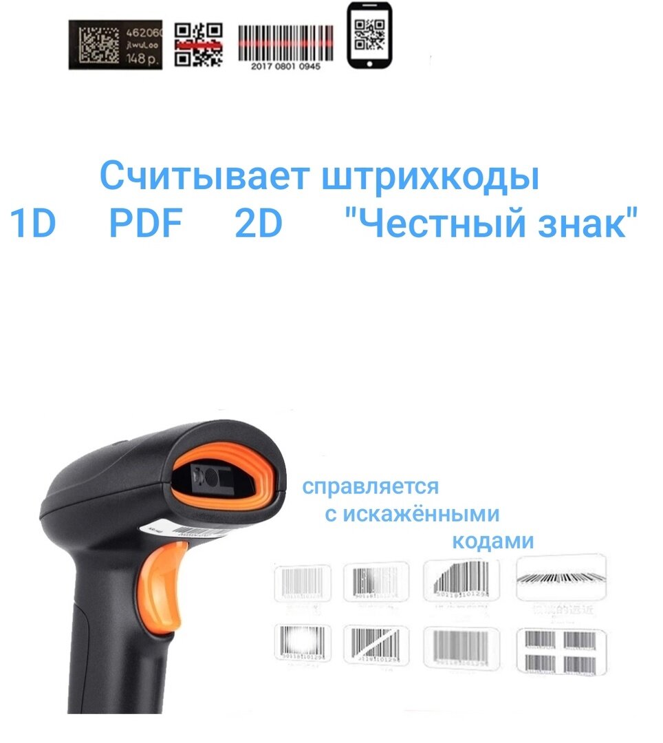 Беспроводной 2D сканер штрихкода для маркировки, ЕГАИС, Честный знак, Атол, Меркурий, идеален для ПВЗ