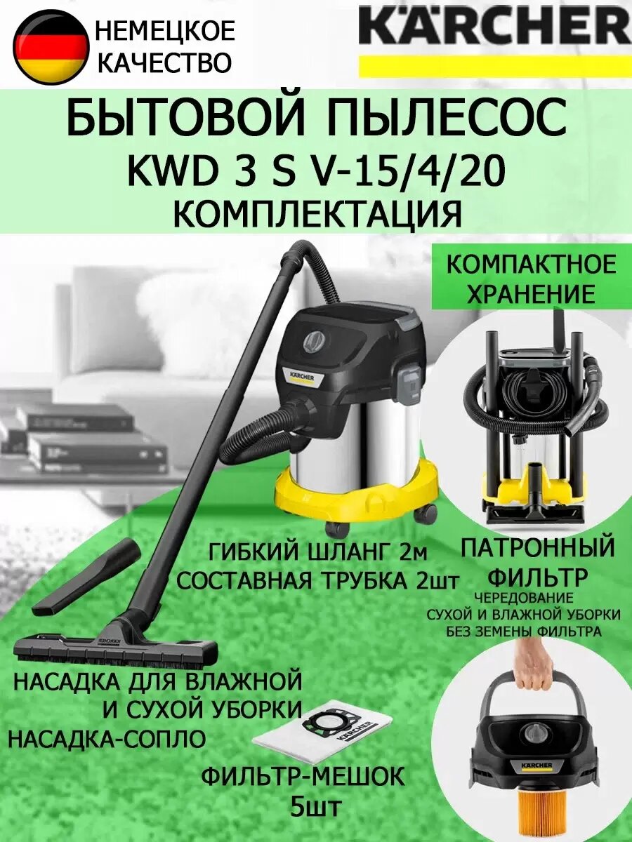 10 цен на Строительный пылесос Karcher KWD 3 S V-15/4/20 (1.628-448.0) желтый / черный